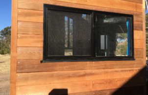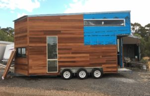 This tiny house is built on a 2.4m x 6.0m steel trailer designed to carry 3.5 tonne; it has a steel frame and is clad with western red cedar and colorbond steel. It has a main sleeping loft suitable for a queen-size bed and a smaller loft for storage or visitors.
