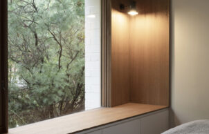 The design priority was to capture sunlight throughout the day and be solar passive. Windows are positioned north-east and north-west, maximising exposure to the sun’s path through the sky. Internally waffle blinds provide extra insulation to the glass, and externally and green eave is growing to shade the larger glazed areas during summer.