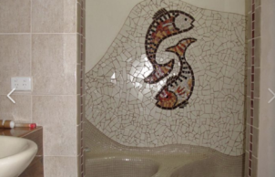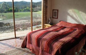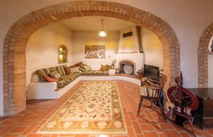 The house has solar/wet back water heating with hydronic radiators for cold winter nights and solar grid-connected power that produces well over our energy needs. Water is collected from the farm buildings above the house to allow for gravity feed. Reed beds deal with waste. Solar tubes , LED lights and a front wall of insulated glass provide plenty of light. Clay pavers keep the floors cool in summer and store solar heat in winter, but the main temperature control is through thermal mass. Lime render lets the walls deal with moisture.