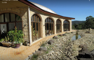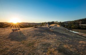 The ruins of the old house have been recycled as a BBQ and classroom area enclosed by an edible garden, whilst the new house is situated in a fire reserve by a large dam.