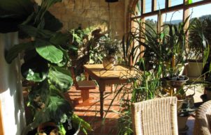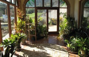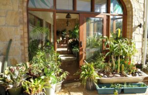 Recycled materials are used for doors and other features, and a solar buffer zone grows ginger, turmeric and other plants that help control air pollutants.