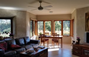 The owners of this property built there strawbale home on what was formally a harvested pine plantation Through years of hard work they have transformed this derelict land into an abundant edible garden and together with their highly energy efficient home have created an enviable example of self-sufficiency on a small acerage. The entire home is heated using a double-sided wood heater with fuel taken from fallen trees on their property. A worm farm system takes care of treating all blackwater on site, and dam water is used to irrigate edible gardens overnight.