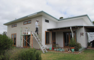The Strawbale Eco-Farmhouse, is a super insulated, passive solar heated home that stays warm from autumn through to spring utilising mass collected in the coloured concrete floor as the main solar heater and thermal battery, our wood fire runs an average of two evenings a week in the height of winter as temperatures usually stay in low 20s through passive solar heating alone.