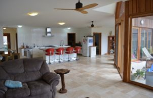 Kitchen recycled Blackbutt benches and stainless steel preparation areas.