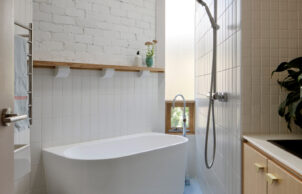 Split a large, underused bathroom into a functional bathroom/laundry and a compact guest room/study—adding a valuable extra retreat for the family or visitors.