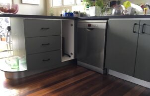 The renovation of Gill St, Holland Park, began the day we took ownership of the home back in 1998. The investment was broken up into five main chunks to spread out the expense. The red asbestos roof, daggy décor, and lack of garage and perimeter fence and garden meant that the house was on the market for some time, which enabled us to purchase the house at an affordable price. Pulling up old carpets, removing ugly wallpaper, and painting the interior a light colour brightened the house significantly, so less artificial lighting was needed. The original owner-builder intuitively included passive solar design concepts, which we continue to benefit from 70 years later. We opened up the north-east covered patio adjacent to the lounge and kitchen to improve cross-ventilation and cooling, and replace the kitchen, bathroom and toilet for a modern look that incorporated water-efficiency where possible.