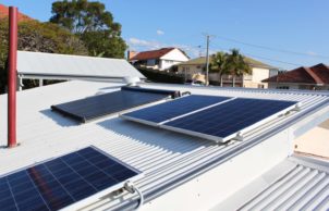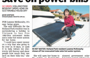 The two old electric hot water systems were replaced with an Apricus rooftop evacuated-tube solar heating system with inside, insulated 315L water tank. And we installed a rooftop, grid-connected 3kW solar power system at the 50c feed-in tariff. Internal lights are either energy-efficient LED down lights or CFLs, with outdoor solar lighting or motion-sensor security lighting.