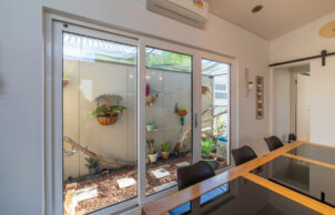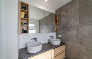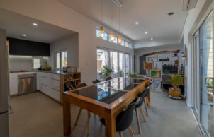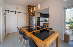 After a short design period with Essenziale and the team at I-SMART Building Group we were on site and building. 6 Months later we had our completed beautiful home. The design which is largely focused on Passive house principles also considers and captures North and Western aspects very well. A beautiful courtyard placed central to the block on the northern elevation provides a magnificent but private extension to the open plan central living area of our home. We spent quite a bit of time on the placement, size and orientation of our windows which has resulted in fantastic cross flow ventilation and very controlled solar heat gain. We also designed the front (East) of the home to specifically be interchangeable which works incredibly well. This can be either a two bedroom two bathroom living area or by locking just one door two individual one bedroom apartments which accommodates intergenerational living when our relatives visit from Germany for extended periods.