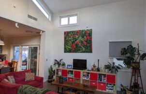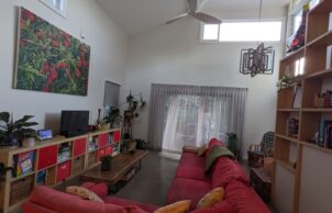 In the summer we mostly rely on the ceiling fans and only on very hot days turn on the air-conditioning. The reverse is the case in winter, and we do not need to heat the house as much as we used to. The rooves of the house, garage and carport support solar panels and we intend to eventually switch to electricity for hot water, the cook-top and the car.