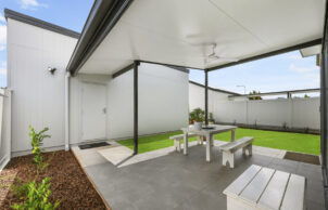 This project faced difficulties due to a relatively small 400m² allotment with poor orientation— a wide exposure to the east and west, with limited north-south access. Despite this, it achieved a 7.4-star energy rating. This was achieved by relocating the living areas to the rear of the home and incorporating sloped ceilings to these areas. With these sloping ceilings we have higher external walls to north so we could maximize the northern glass for better winter sun access. Additionally eastern glazing was increased, and window hoods were added to further improve comfort.