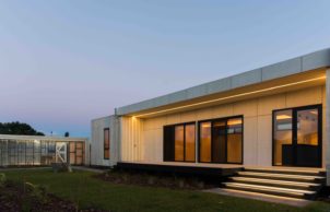 The system is based on the Passive Haus design criteria, which rely on a highly insulated structural building system with a tightly sealed living space that enables the environmental conditions of the internal living spaces to be easily controlled. This is done with airflow through a heat recovery ventilation system that exhausts all the stale hot air and replaces it with fresh filtered air on an hourly basis. This system only uses 2 x 80W fans and, combined with the airtight structure, can reduce power consumption by up to two-thirds less than a standard build.