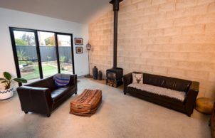 They wanted to run the house wholly from solar, with the option for batteries in future, so have chosen against a gas connection and installed a heat pump for hot water, a 6.2kW solar system (east–west orientation) and induction cooking. The building envelope is highly insulated, is made from SIPs (structural insulated panels), uses reverse block veneer for thermal mass and has double glazing. A blower door test showed a 4.7 ACH (Australian average is 15.4), which reduces excess heating and cooling costs and provides greater comfort. The only active cooling is provided by ceiling fans; a wood heater is used for heating.
