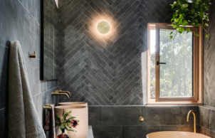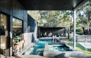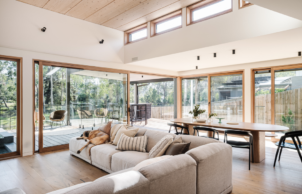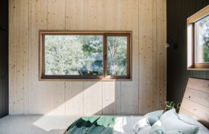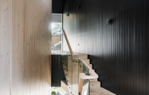 Certified Passive House – With a mass timber structure (less embodied energy than steel or concrete) using structurally Insulated panels to reduce waste and build time. Passive design elements including maximising northern exposure for solar gains in winter, with appropriately sized eaves to block summer sun. Features a green roof, HRV installed for constant fresh air supply and Sustainable Suppliers including Bremworth Carpet, Sussex Tapware and Concrete Nation Basins and Bath. The house runs off stored water only using a 41000l tank system, uses predominantly solar power with a 20kW solar PV system.