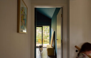 This modest sized corner allotment in Central Ballarat had been subdivided from the property of a gold rush era bluestone home, and as such our parcel of land fell into a heritage overlay. The slope of the land is remnant of both an ancient lava flow and mining activities of the late nineteenth century. The architectural styles of the neighborhood are varied but we decided to pay homage to the traditional style of the pitched roof miners cottage. Privacy and solar gain were important so we set the building as close to the street corner as was allowed in order to maximize the private open space to the north of the building. The modern gable-ends of the home were faced to the sun and the splayed roof overhangs were designed to omit the unwanted summer sun and to obscure views from the street.