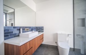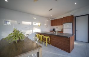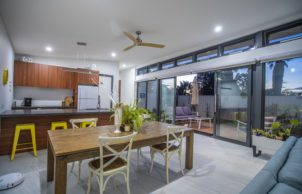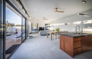 The home is ‘extremely comfortable to live in’, is stated by the new owners. There is little to no need for thick jumpers and slippers in the early hours of the morning or into the evening. The large ceiling to floor windows make for feeling open, airy and full of light even on a dark day. The added secret garden in the master ensuite is a unique and welcoming addition to wake up to for the clients. The other bedrooms in the home have been designed away from the sun so the occupants can stay comfortable well into the late morning if desired. The central kitchen, dining and living area sits next to the large stacker doors and decked patio, making for ease to entertain and transition from one space to the other or keep an eye on little ones playing in the garden. Every element and aspect of the home has been carefully considered to enhance the home owners experience and guarantee they will enjoy their home for many years to come.