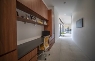 This home sits comfortably at 8.8* following the Nathers Accreditation. The intent was to not use non-renewable energy sources, as such there is no gas connection and all cooking and water heating is electrical. All lights are energy efficient LED lights. Efficient ceiling fans are used throughout eliminating the need for Air-conditioning. For water heating, a heat pump inverter hot water system is used, which is the most efficient way of heating water. There is a dedicated area on the roof which is reserved for solar panels and will be installed imminently. There is a store room next to the carport where the conduits terminate and where the inverter is to be installed, as well as a location for future battery back-up. The location for this room was chosen next to the carport for ease of installing any charging equipment for future electric cars.