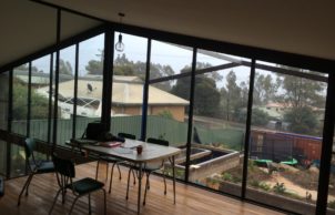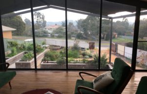 Other additions which have made a difference to thermal control, is the extensive black shade sails that act as a flexible eave to the north. Black was chosen as it bounces less light between the gaps in the shade cloth fabric than a lighter material would. We had to moderate the potential heat gain from the north with the high expanse of windows and a 300mm narrow eave. A motorised retraction option, or motorised louvres would have been a powerful but expensive option as the shade clothe is high, and requires significant effort to remove and reinstall.