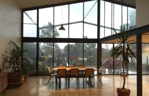 We wanted to maintain the visual continuity of the steel trusses through the new walls so the original nature of the space wasn’t entirely lost. We glazed the trusses, and the upper third of new walls between the bedrooms and studio to the void. This ensured a glimpse of trusses was maintained through the glazing as well as allowing the entry of second hand natural light into internal rooms and the corridor that had no external windows. The upstairs internal studio wall, to the full height living and dining was fully glazed to help maintain the sense of uninterrupted expansion through the steel framed double glazed wall to the north.