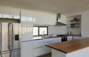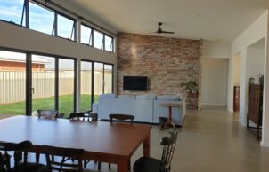 The home features an exposed slab on ground (minimising use of building materials and toxins by omitting tiles, glue and grout), predominantly timber framed external walls yet with some reverse brick veneer is strategic locations is ideal for the mild, temperate Dunsborough climate.