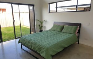 The north side, where main living areas are located will have deep winter sun ingress across the concrete slab as well as selected, internal brick walls. In summer, these mass walls thermally coupled to the floor will absorb infiltrated heat and as such minimise overall temperature fluctuations. Wider hallways, walk-in showers and recessed sill to all external sliding doors have been implemented to aid with accessibility and allowing good flow through the house.
