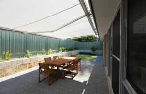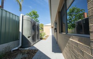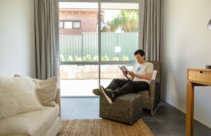 Using materials with high thermal mass, the ability of a material to absorb and store heat energy, has been integral to this design. This home features slab on ground, bricks and floor tiling which are ideal for the Perth climate due to its high diurnal temperature swings.