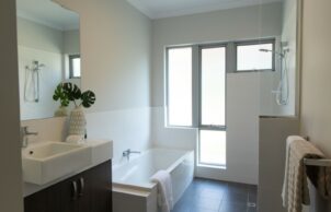 Universal access design considers better access up to the building transitioning into the building and movement and flow inside of the building. Utility areas such as kitchen, bathroom, and laundry also allow better access and usability for those with varying accessibility needs. Flush thresholds have been used minimizing trip points particularly in showers, wider doorways and hallways add to this whilst also allowing good access for furniture, prams etc.