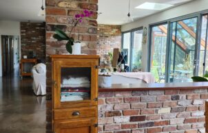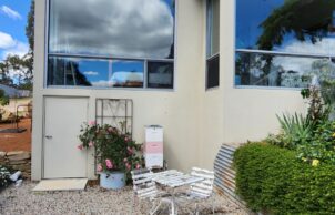 Sustainability is very important to us and informs most decisions we make on our 64 hectare property in the Murrumbidgee River corridor. Our home is an off-grid, north-facing, passive solar building, constructed with Thermacell blocks on an insulated slab. We call it a giant esky! It features double-glazed, thermally broken windows and three layers of cross-knitted insulation in the roof sourced from leftover building supplies (R3.0, R2.4, & R1.3 anticon blanket). Thermal mass is a focus with heat capture facilitated through burnished concrete floors, recycled brick feature walls and sun-exposed internal walls filled with solid core bricks. All gaps around windows and doors are sealed.