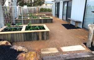 Three Tinnies is a classic and comfortably coastal home for the whole family. Designed by the award winning Beaumont Building Design, with an extensive native landscaped garden by the Sustainable Landscape Company, this house is affordable, comfortable and sustainable living at its best and in a great location. The owner is an experienced landscaper who has poured his heart into creating a productive and sustainable garden with gorgeous reused and recycled accents to complement high-yield vegetable growing.
