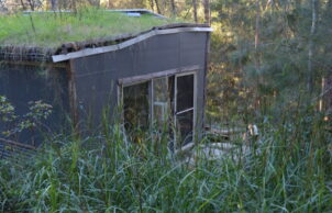 The site also has a neighbouring old shed used for honey processing overflow of gear and storage. It was built with mostly dead timber from the site saving timber and storing carbon and reducing any transport of materials and has a green roof.