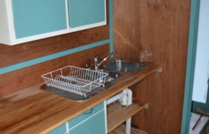 The Tiny House is built from a recycled car trailer. It was built with timber frame and two lofts. It can sleep 4 people and is an economic way to have some fun accommodation. It required some innovation to get everything to fit.