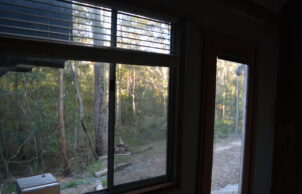 The cost of the house was minimised with second hand and often-free windows doors and glass. The house is not well protected from bushfire and like camping requires a high level of awareness of weather conditions. It would not be prohibitively expensive to replace. It could also be moved from a fire path if a season allowed for ample warning as happened in the 2020 fires and severe drought with the fires impacting over several weeks.