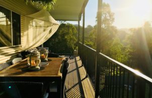 Our aim was to be in harmony with nature and keep energy usage to a minimum, hence no air conditioning and a modest 138m2 footprint with 89m2 internal living space. Our lighting and fridge are all 24V, with an inverter suppling 240V for all other electrical needs powered by 12 solar panels (2.4kW). Our hot water is provided by a 300L rooftop solar system, which is backed up by an instant gas unit running off an 8.5kg LP gas bottle, which also supplies our cooking stove. Our composting toilet and naturally filtered greywater system minimises water requirements and our impact on the environment. We hope eventually to redirect greywater from trenches to a reed pond that will provide habitat for native frogs.