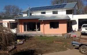 Construction Double stud external walls, on slab. Wall and roof insulation R6+. Well-known and economical pine framing, Hardies compressed cement exterior cladding and interior plasterboard, all for minimum maintenance.