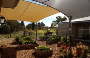 We have a productive veggie garden close to the kitchen, perfect for easy harvesting on demand.The shade sails that protect the house in summer, also help protect the softer veggies in the hottest months, and their removal for winter allows full sun access for the winter.