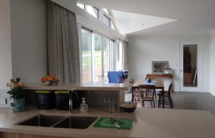 Our recently completed passive solar home on a semi-rural property was designed and orientated to maximise northern exposure as well as views down the valley to the south. In summer, sails and deciduous vines shade the northern windows and double glazing to the south keeps the ambient heat out. The long, narrow floor plan with excellent cross ventilation allows quick flushing of any warm air as the sun goes down, using the south-west breeze up the valley.