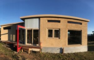 Here I have a building on an island off an island with a core material that has come from Europe and a principal building team who lived 1 3/4hr drive away plus a short-term hemp building team from Victoria. The materials and team were thus as they were not available at the “crest of the wave” in Australia’s hempcrete building. Yet, it is a modest 71m2 with an open plan, minimal “structure”. The building process created minimal rubbish on site. The final construction cost of around $5000/m2 including all design, planning, water catchment/supply, off grid power.