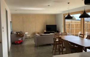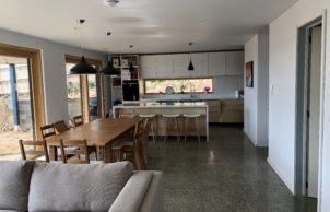 Recently pressure tested, it was found to be 3 times tighter (0.2 ACH50) than the Passive House standard. In-slab hydronic heating and cooling is installed but so far haven’t been needed – the temperature in the house has not fallen below 21C.The owners moved in at the beginning of winter, though the house is still a work in progress.