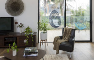 A feature house in Australian House and Garden magazine October 2016 and Home Design magazine 2018, White Pebble House, with interiors designed by White Pebble Interiors, combines the principles of passive solar design with elements of Modernist architecture, set in a naturalistic Australian native garden setting with a natural pool (billabong).