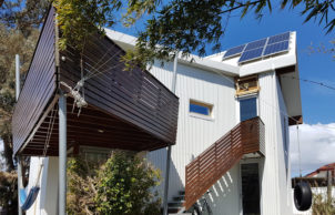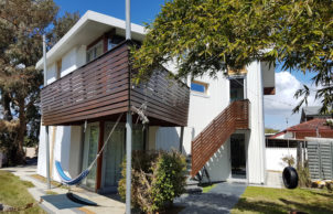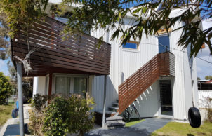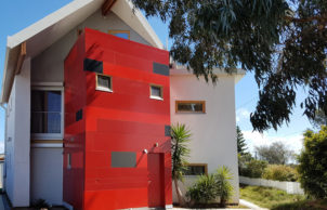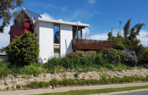 This two-and-a-half-storey, architecturally-designed and owner-built house is located at the highest point of Scarborough Beach Road in Doubleview. The house is the first strawbale building that has been approved and built in the City of Stirling, and one of the first in the metropolitan area.